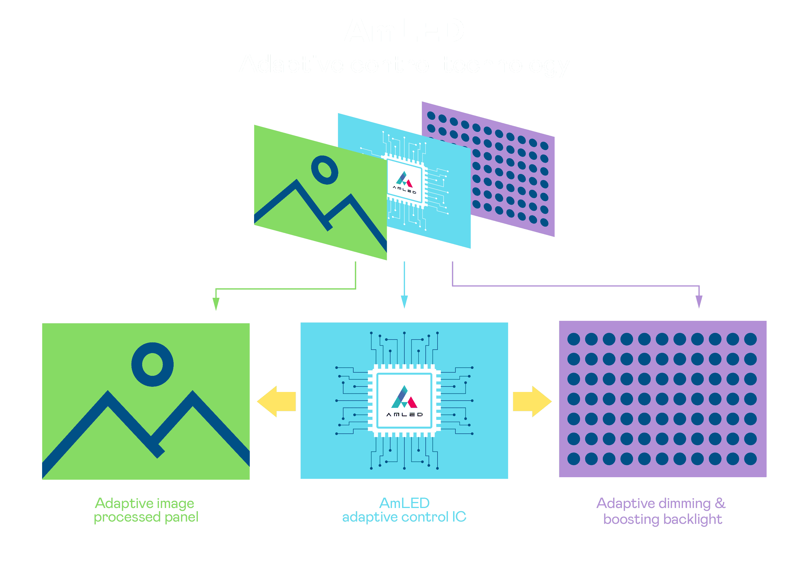 AmLED 具备更省电与低蓝光特性。。。与一般的 LED 背光显示技术相比,,,,由于 AmLED 常时处于局部调光状态,,,其功耗仅有前者的 50% 左右,,,,同时 AmLED 还具备低蓝光特性,,满足长时间使用的护眼需求。。。