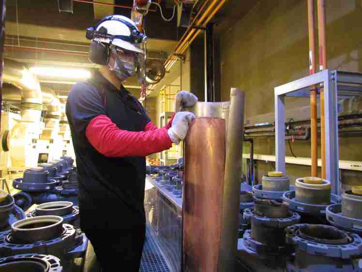 红龙扑克将废弃物转化成有效的工业或民生原物料,,,图为废铜液淬炼后再制成纯度极高的铜管